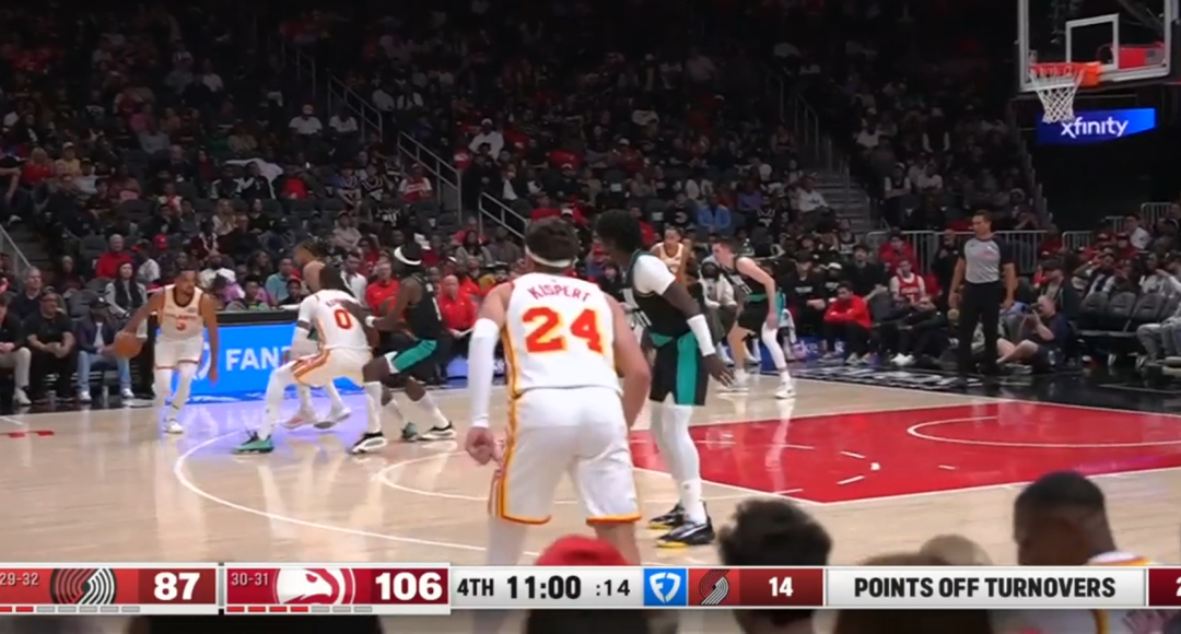 ——第三球利用开拓者的防守失误直接篮下强起,这一次小杨成了背景板